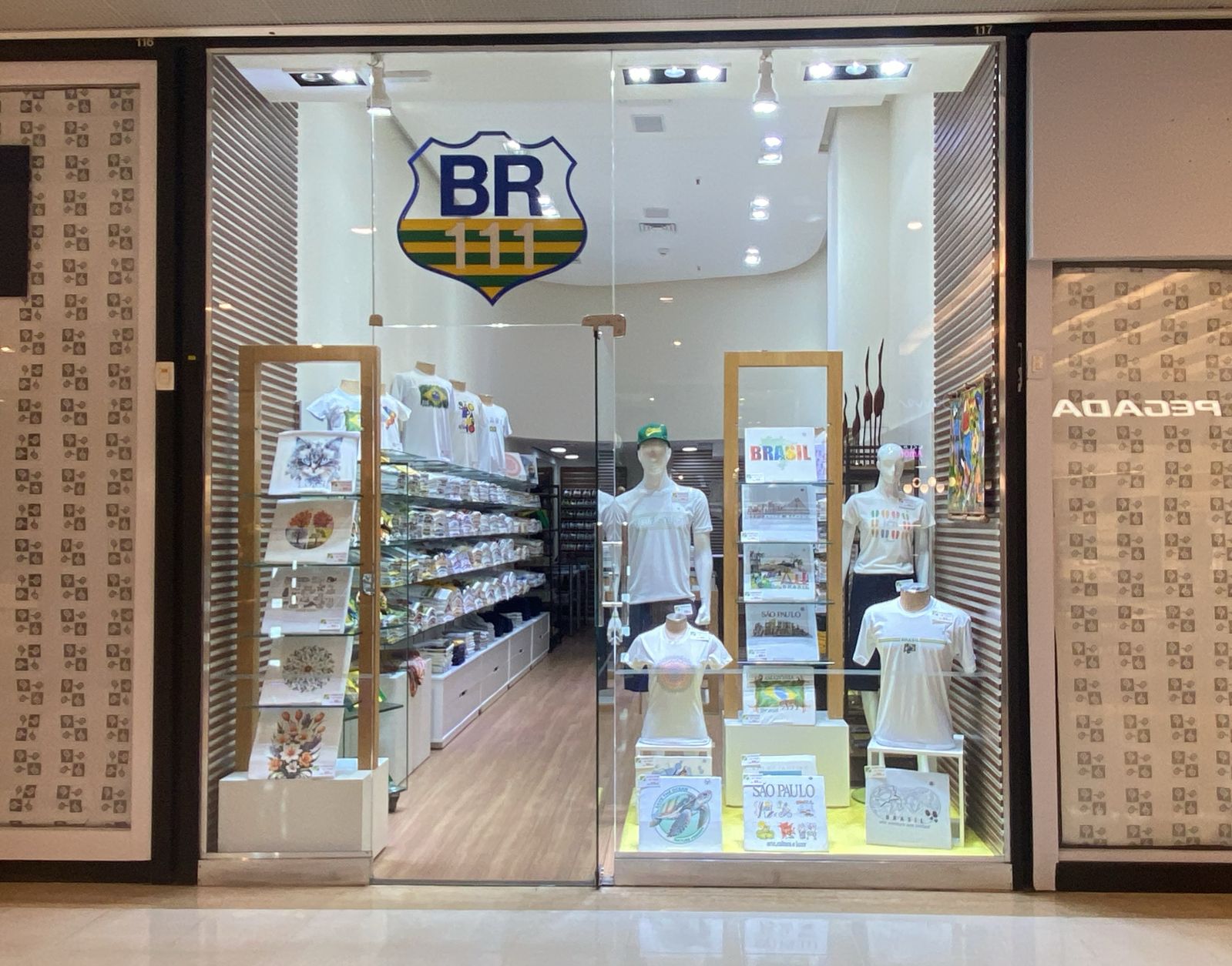 A BR 111 é uma loja dedicada a celebrar a identidade brasileira. No espaço, você encontra souvenirs, lembranças, presentes e produtos que representam a cultura, as cores e o estilo do Brasil — opções perfeitas para presentear ou levar um pedacinho do país para casa.