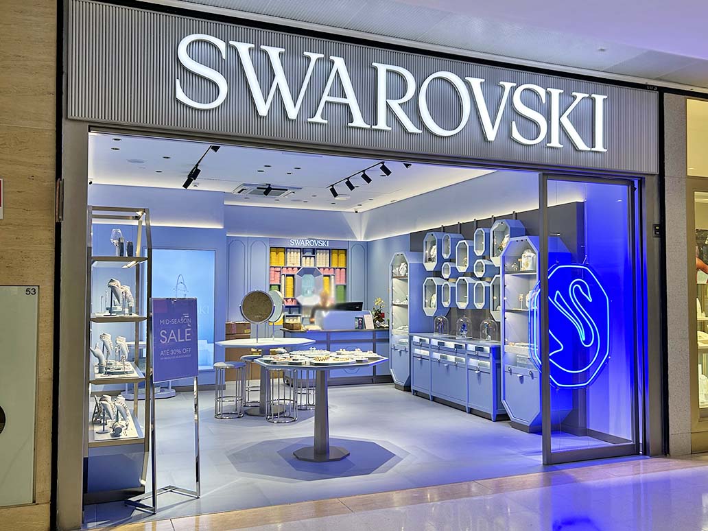 A Swarovski é uma marca internacional renomada por suas joias e acessórios de cristal de alta qualidade e design sofisticado. Suas coleções incluem colares, brincos, pulseiras e objetos decorativos que brilham pelo acabamento impecável e pela elegância atemporal. A marca é sinônimo de luxo, estilo e exclusividade, oferecendo peças que realçam a beleza e a personalidade de quem as usa.